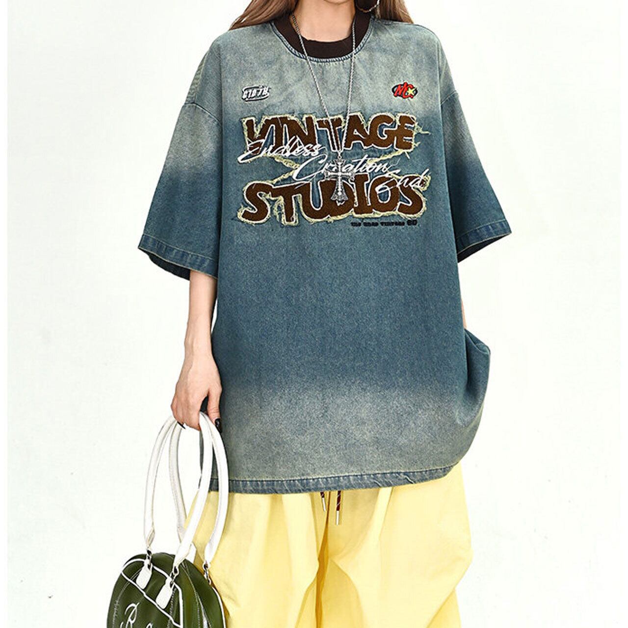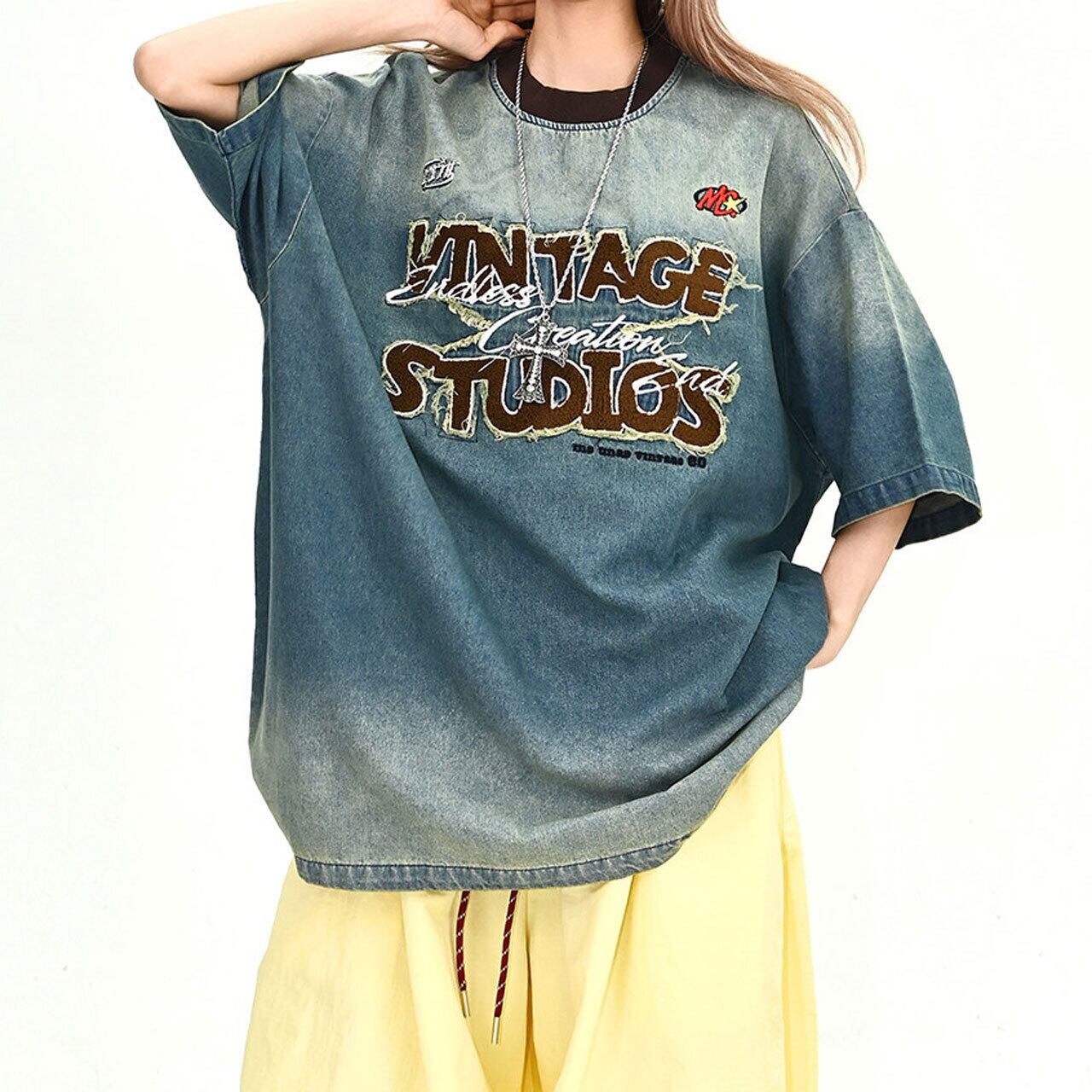 グラデーションウォッシュドデニムライクルーズTシャツ 1col R02193
