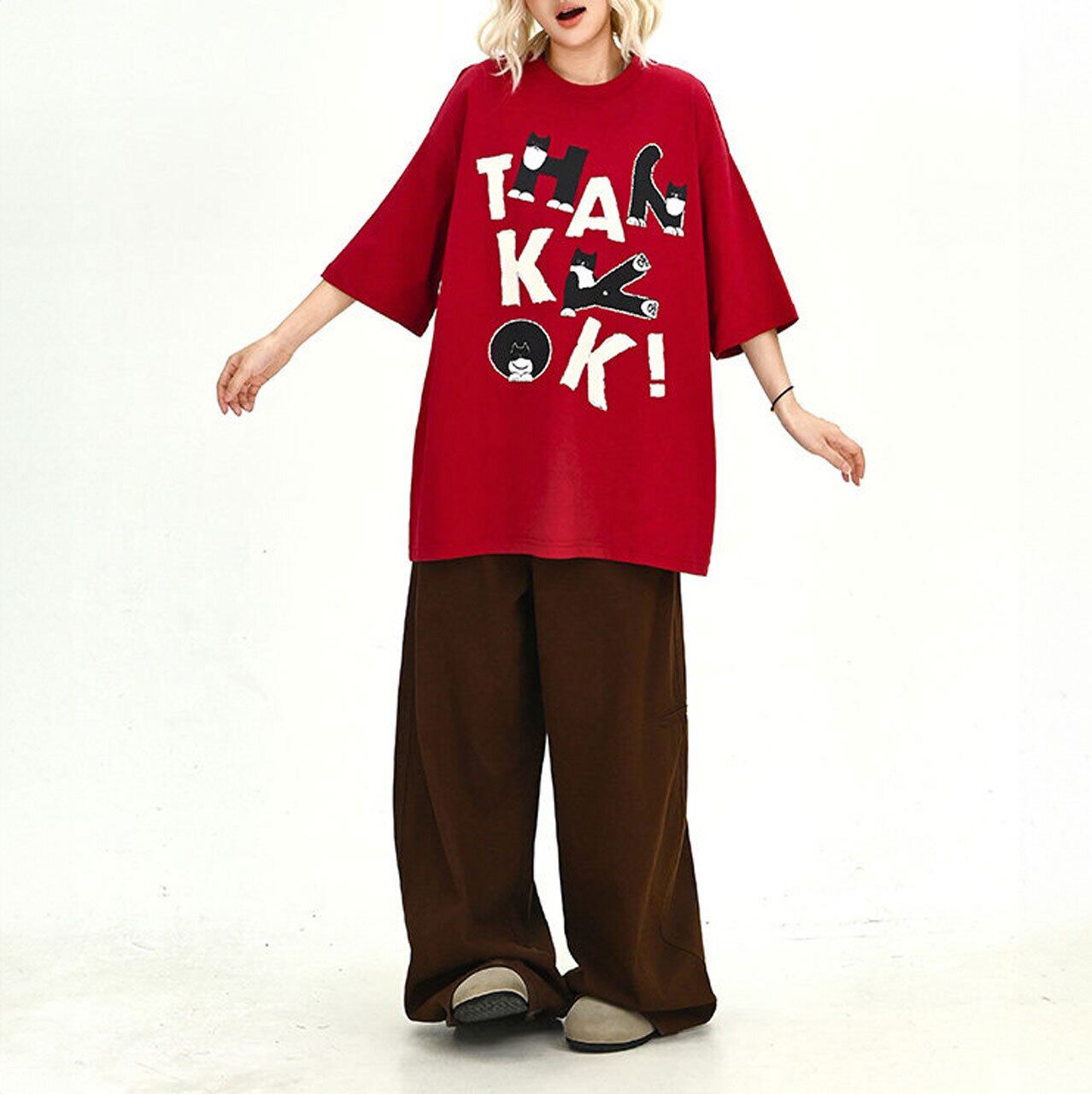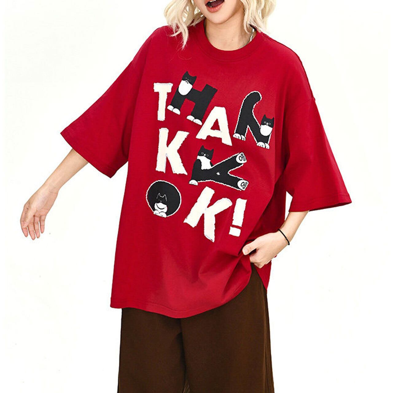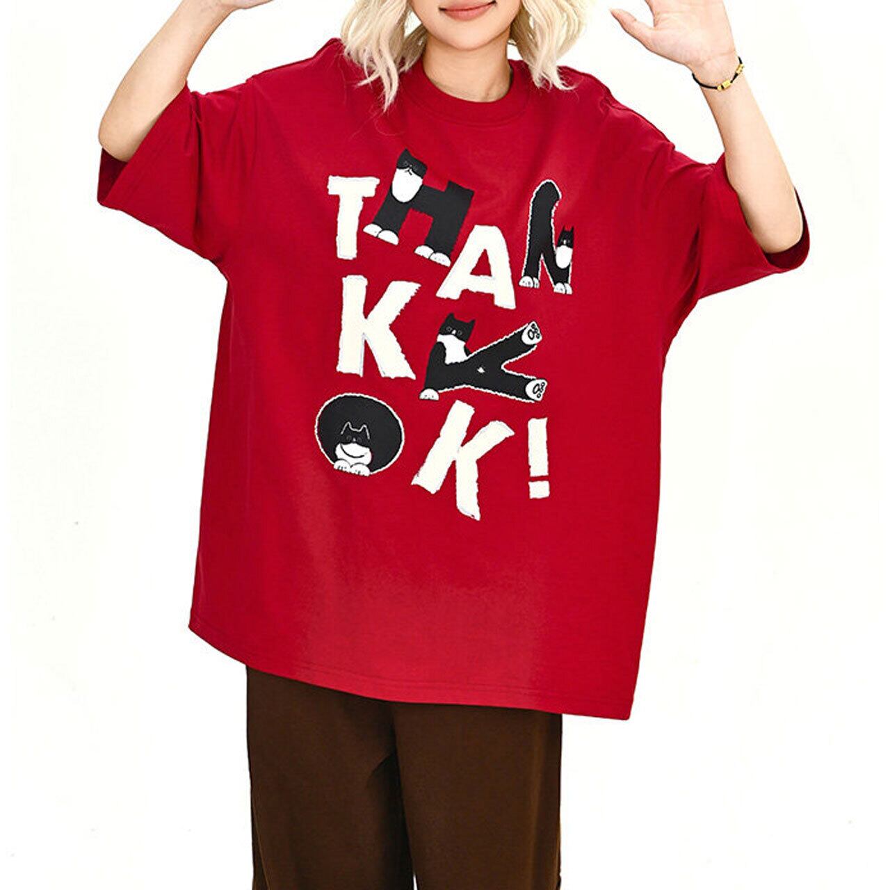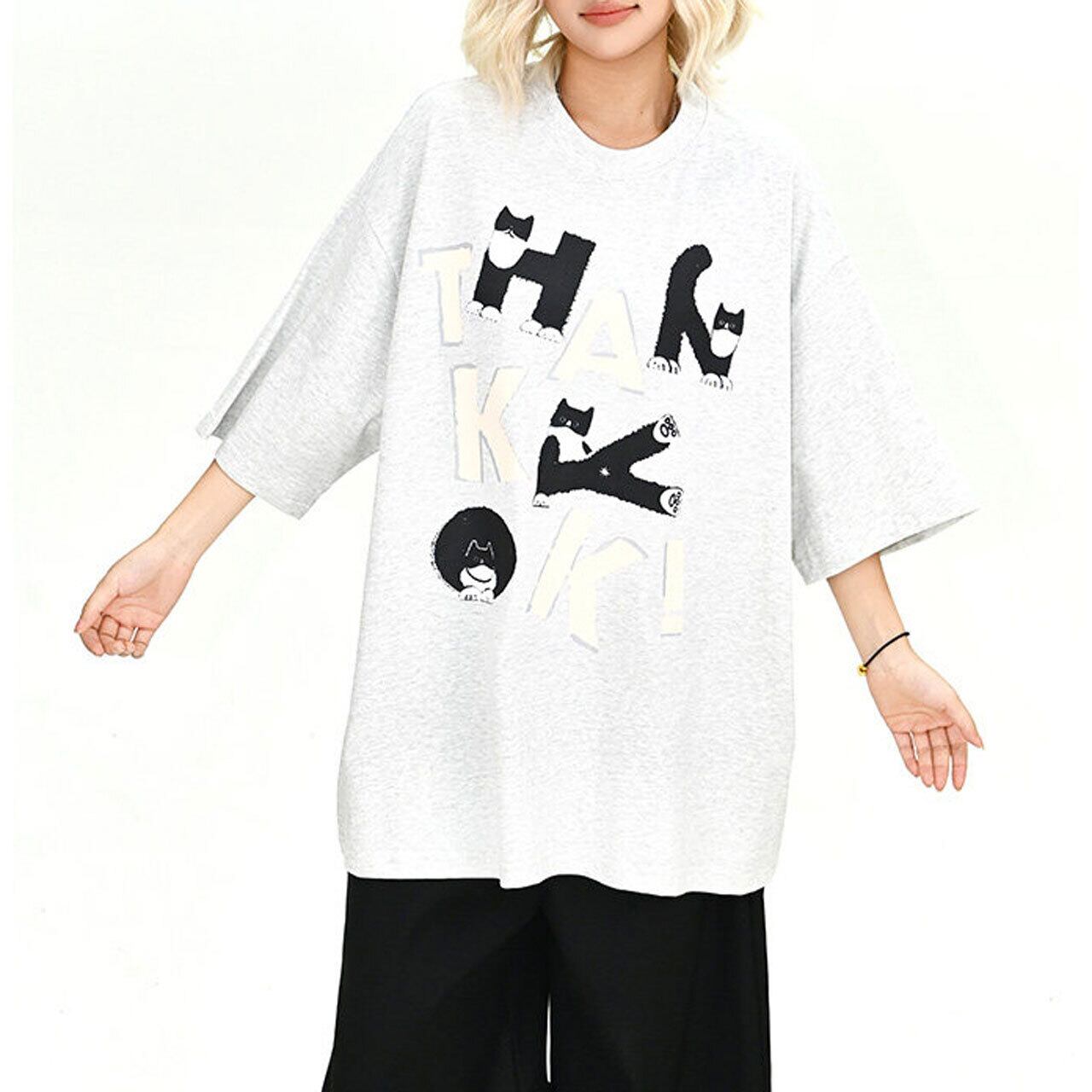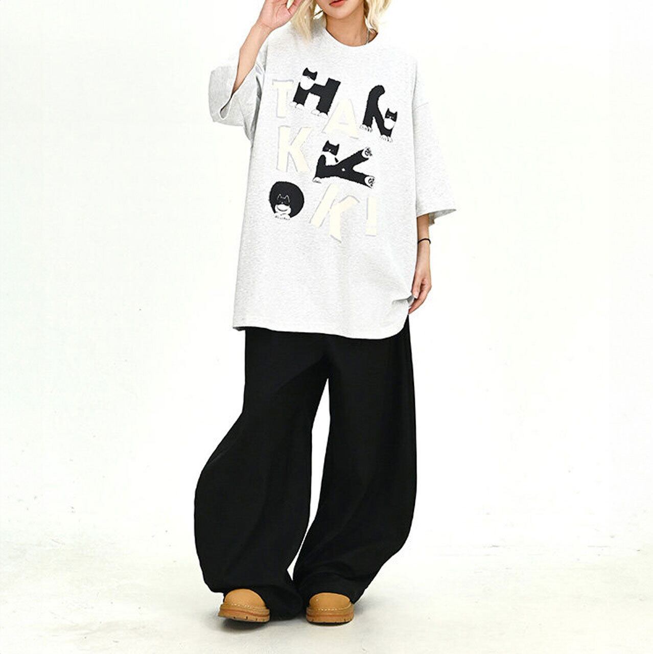 キャッチーなフォントと愛らしいキャットモチーフを大胆に配した、遊び心あふれるオーバーサイズTシャツ。