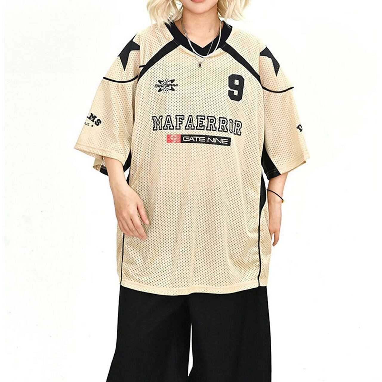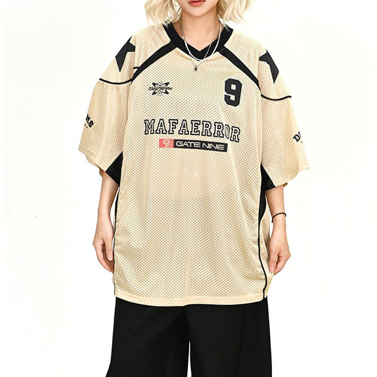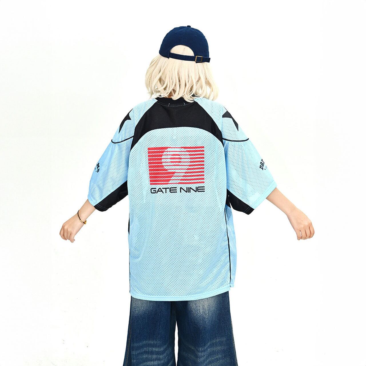 大胆なナンバリングとフロントロゴが目を惹く、ストリート感溢れるメッシュTシャツ。