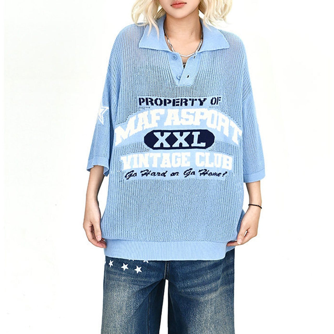 透け感のあるメッシュ編みがトレンド感を演出するサマーニットポロ。